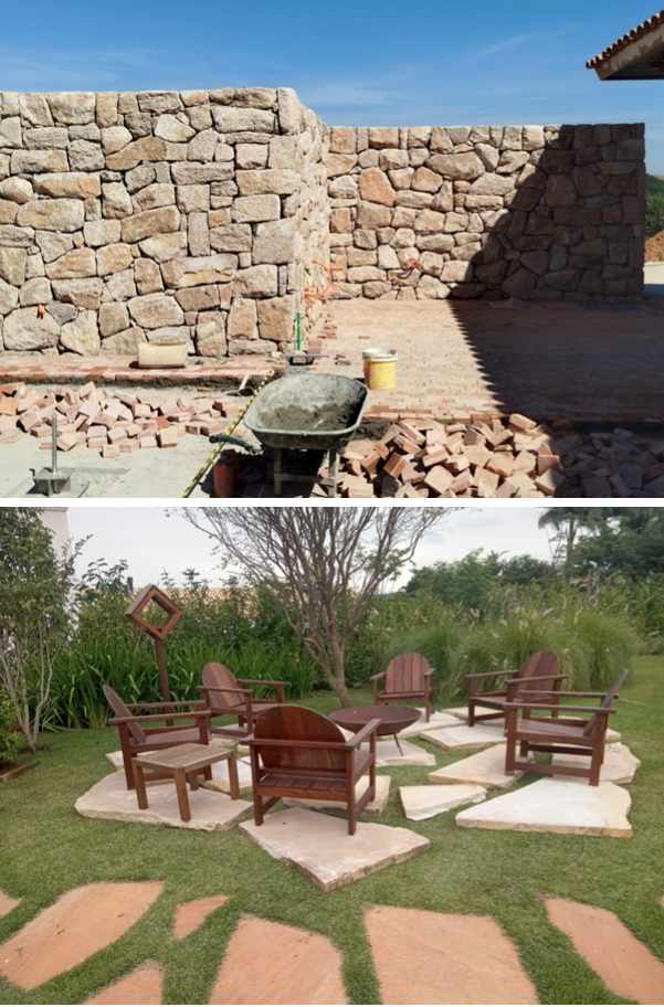 Muros com Pedra Moledo • Calçamentos • Revestimentos • Escadas de Folhetas • Calçamento com Rejunte de Grama • Tijolos Avista Rústicos